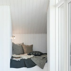 Sommerhuset er skabt til hygge og afslapning. Et godt læsehjørne er perfekt, når det er indevejr og I kan skabe hulestemning i alkoven og på hemsen med masser af bløde puder og hyggebelysning.